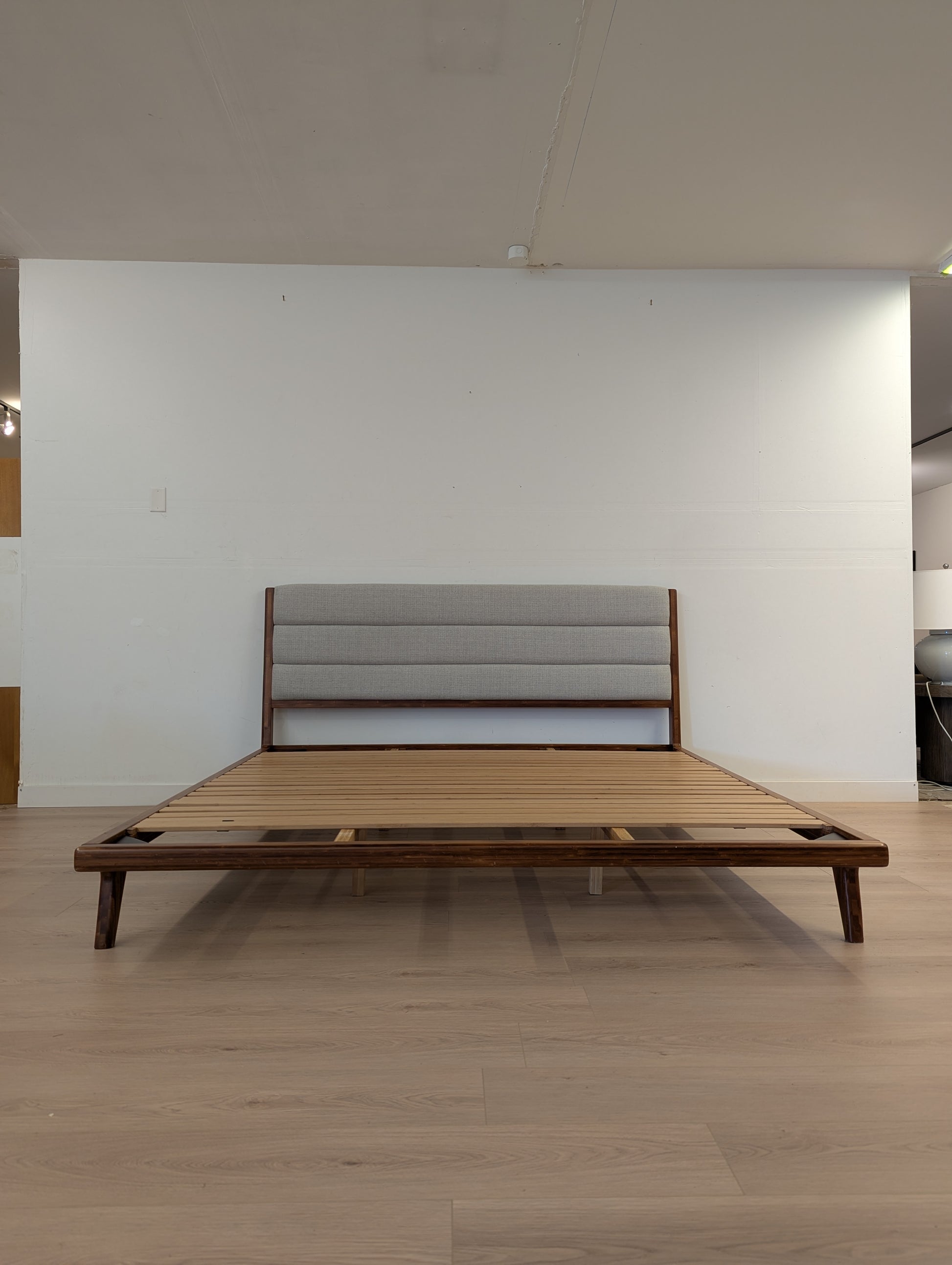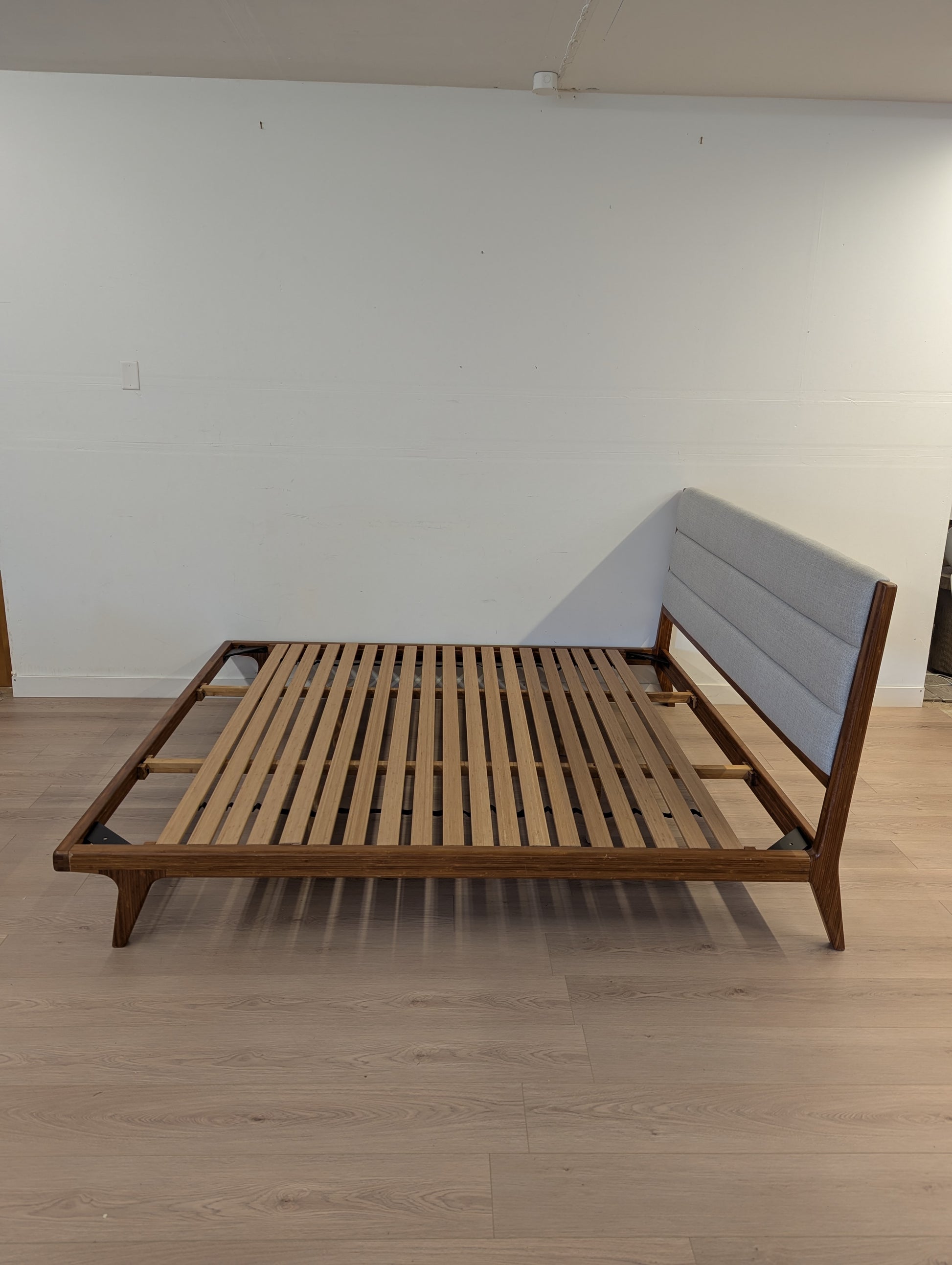 FAWCETT Mercury Mid-Century Solid Bamboo Upholstered King Bed Frame