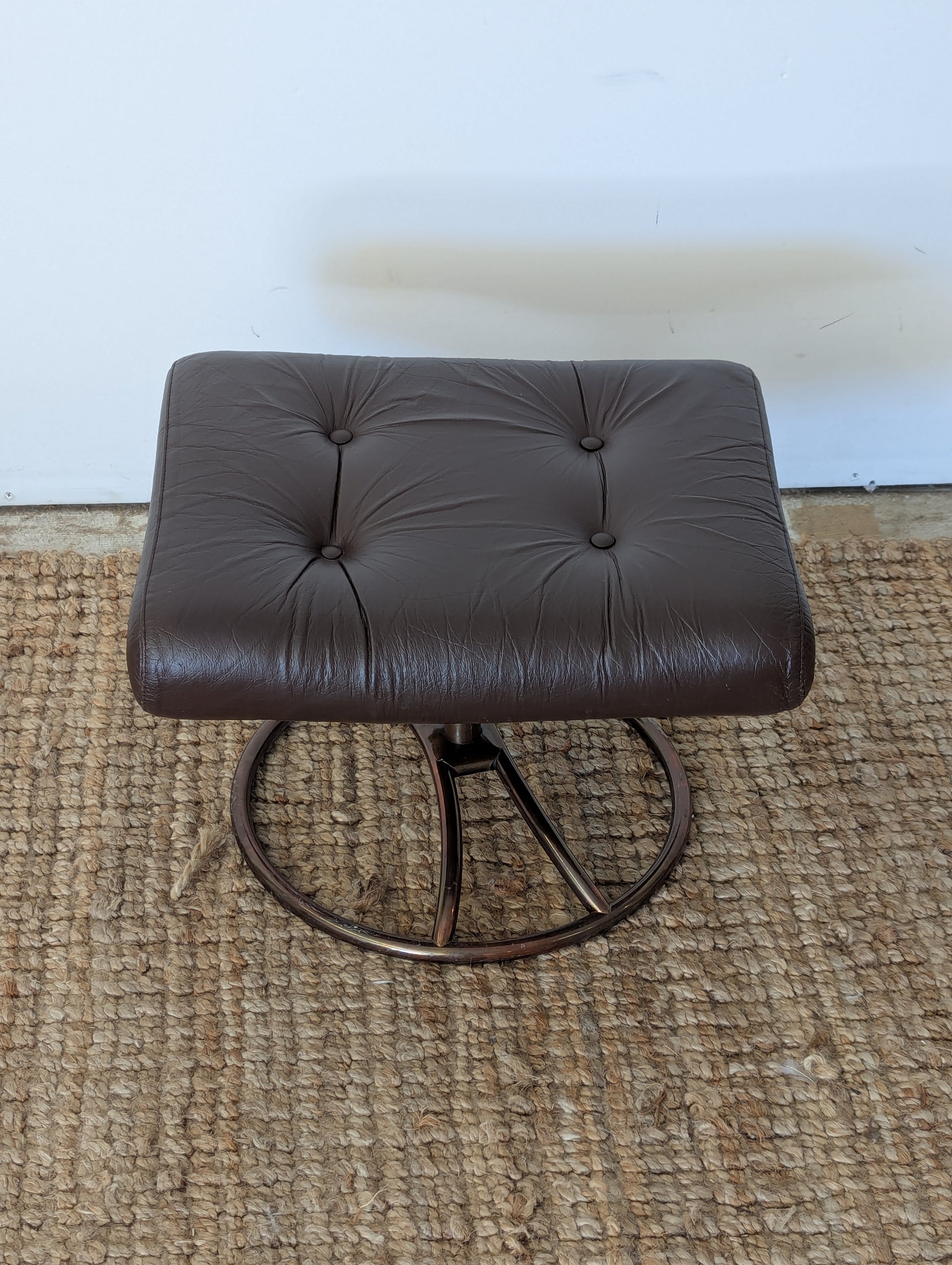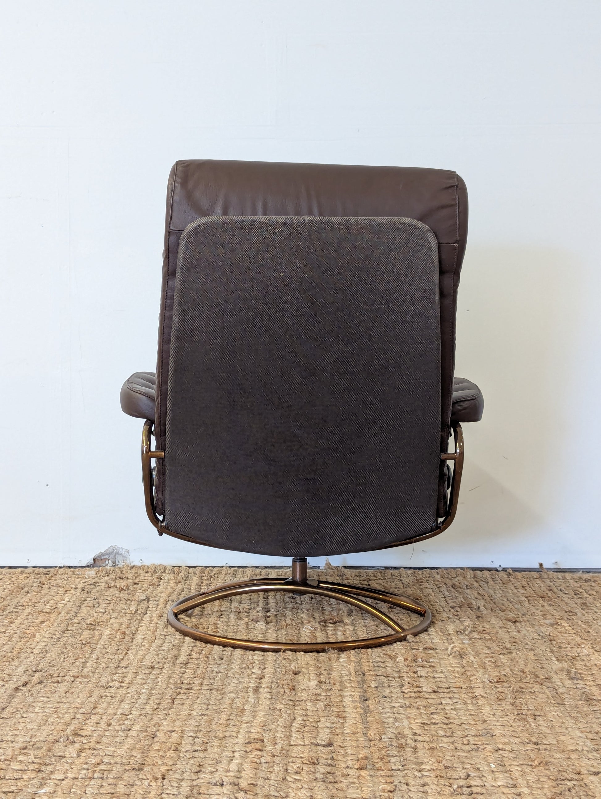 Description: Vintage Ekornes Stressless Lounge chair and ottoman. Surprisingly smooth reclining mechanism.